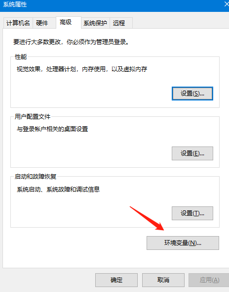 点击“高级系统设置”,在弹出对话框找到“环境变量”。